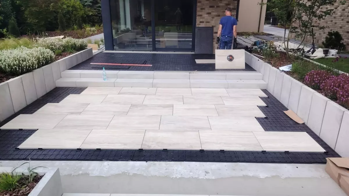 • System jest kompatybilny z większością płyt tarasowych: gres 2 i 3 cm, płyty ceramiczne, płyty betonowe (w zależności od grubości) oraz formaty standardowe i wielkoformatowe.