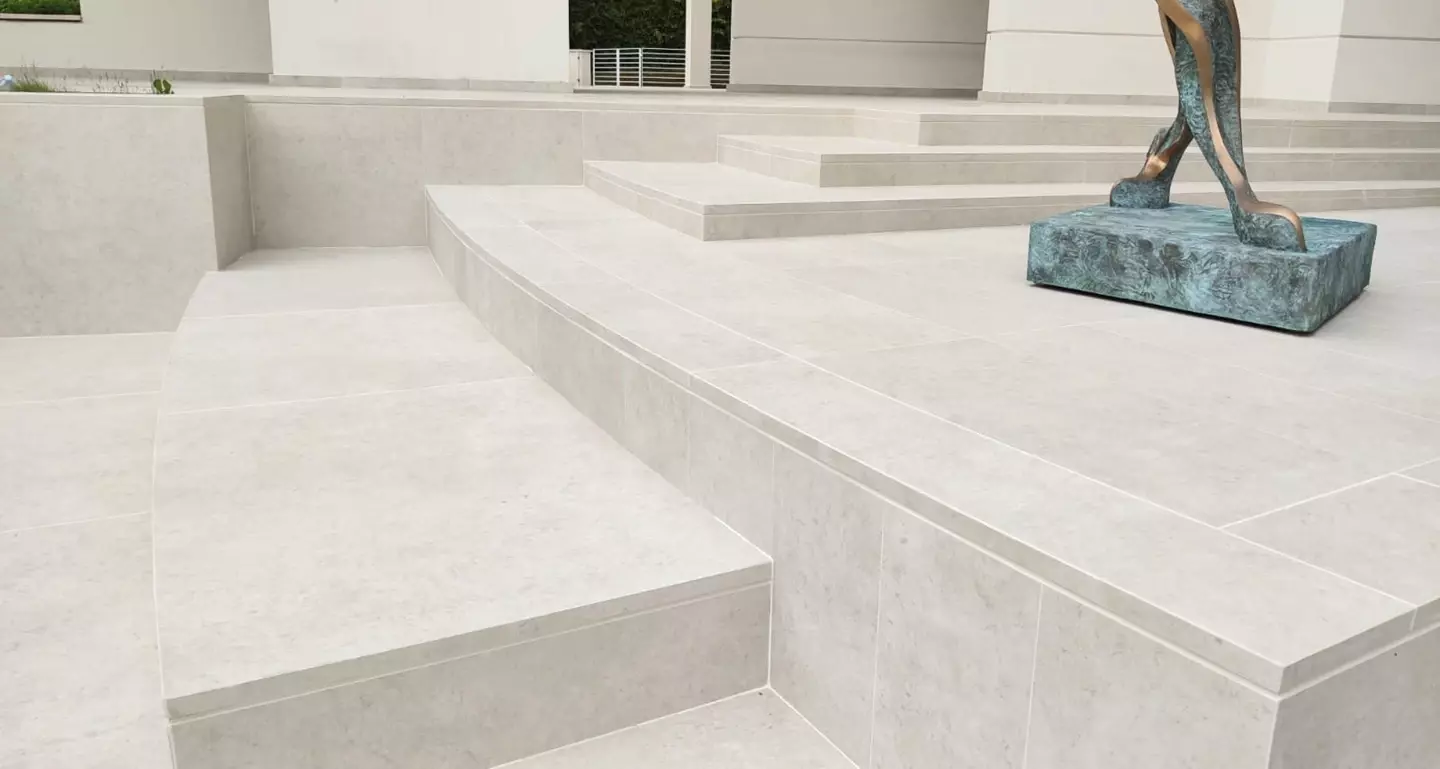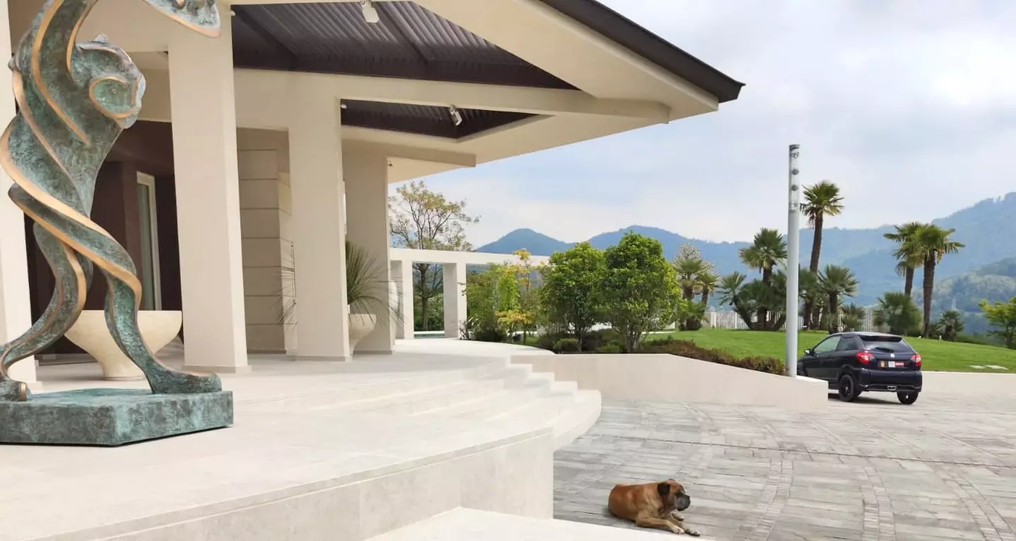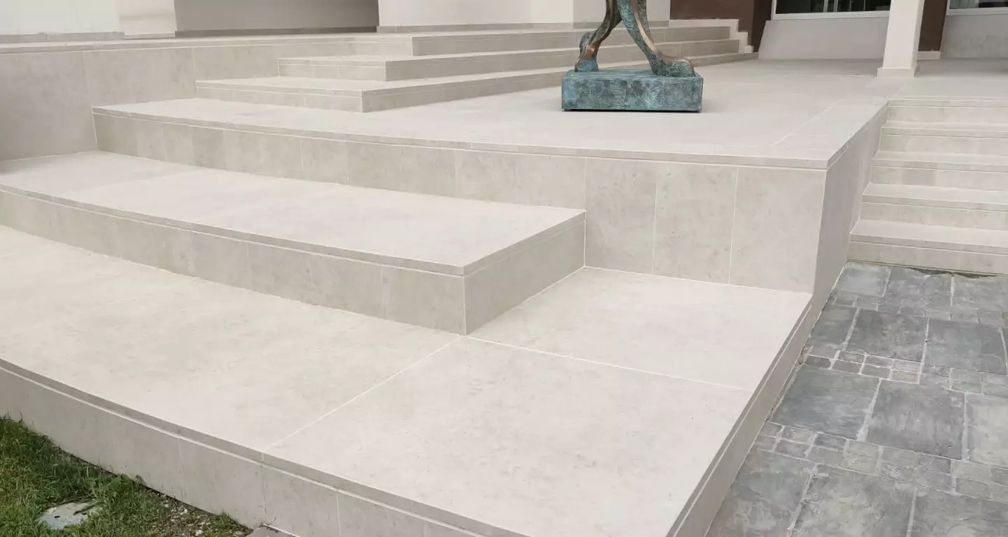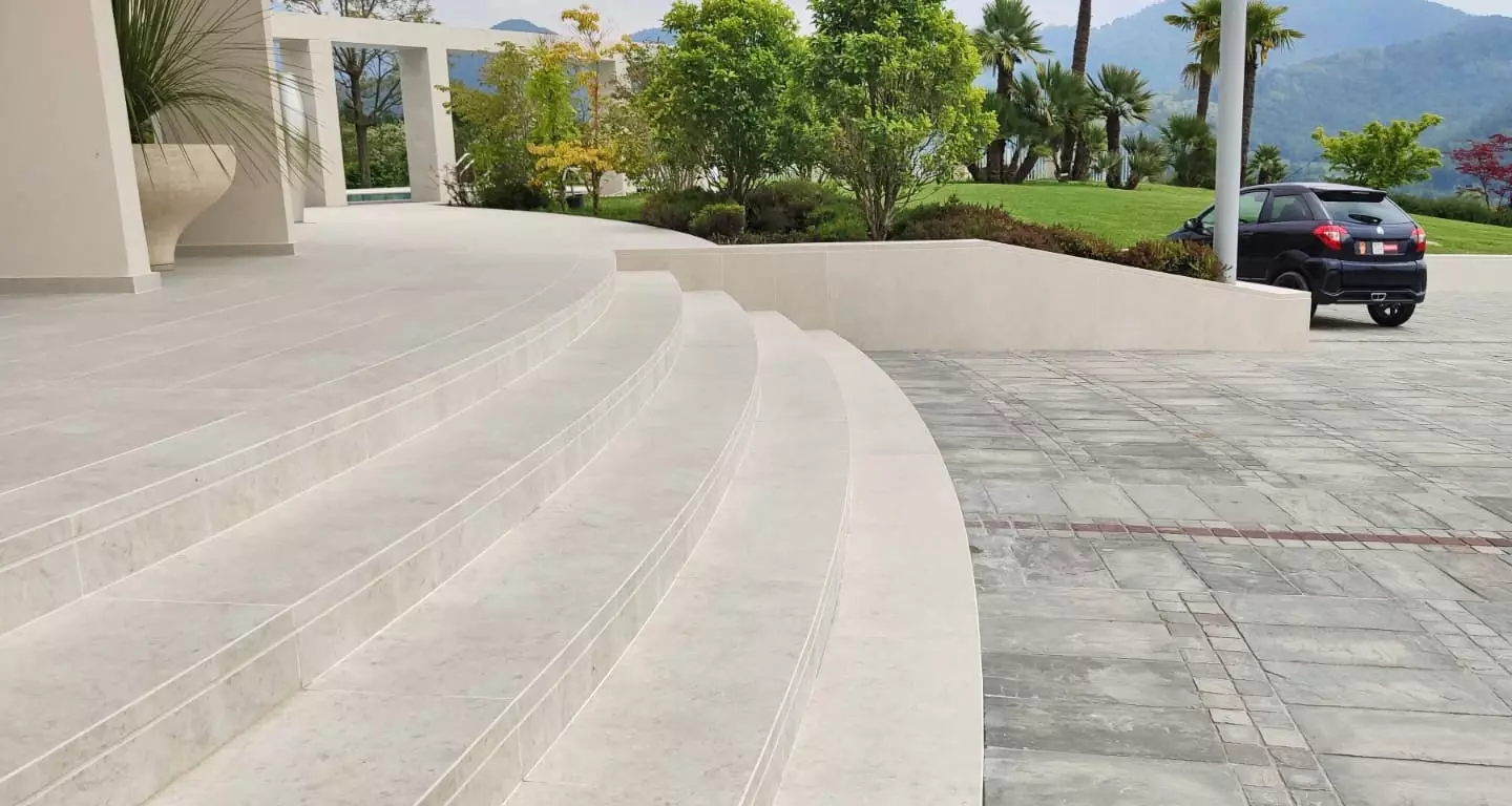 Aranżacje tarasów które otaczają cały dom. Otoczenie i przestrzeń około domowa tej monumentalnej rezydencji to wyjątkowy przykład na to jak życie wychodzi z domu na zewnątrz. Do wykończenia tarasów, schodów i balkonów wybrano płyty tarasowe z naszej kolekcji. Rodzaj płyt tarasowych to L'ALTRA PIETRA Colosseo Pietra di Gerusalemme 45x90 cm , 60x60 cm 120x240 cm Płytka wiernie odtwarza wapień dolomitowy wydobywany w Hebronie w Palestynie. Powszechnie znana również jako kamień Jerozolimski.