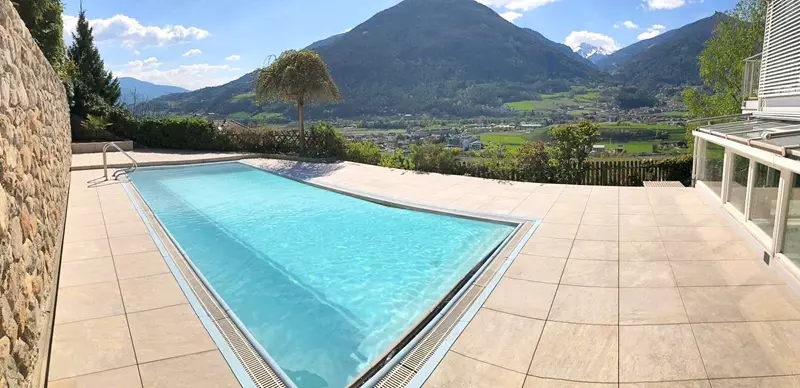 Taras przy basenie w Bolzano