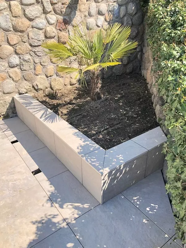 W projekcie zastosowano płytki tarasowe imitujące kamień naturalny w kolorze beżowym. Produkty te są antypoślizgowe (R11) i odporne na duże obciążenia, co pozwala stosować je na tarasach, wokół basenów oraz w miejscach o dużym natężeniu ruchu. Płytki nie chłoną wody, są odporne na plamy, pleśń i kwasy, a ich powierzchnię łatwo utrzymać w czystości. Takie właściwości sprawiają, że taras jest bezpieczny i trwały przez wiele sezonów.