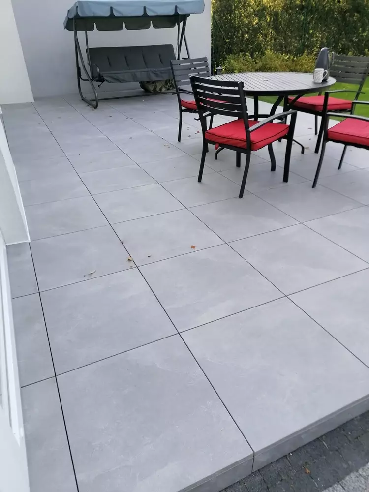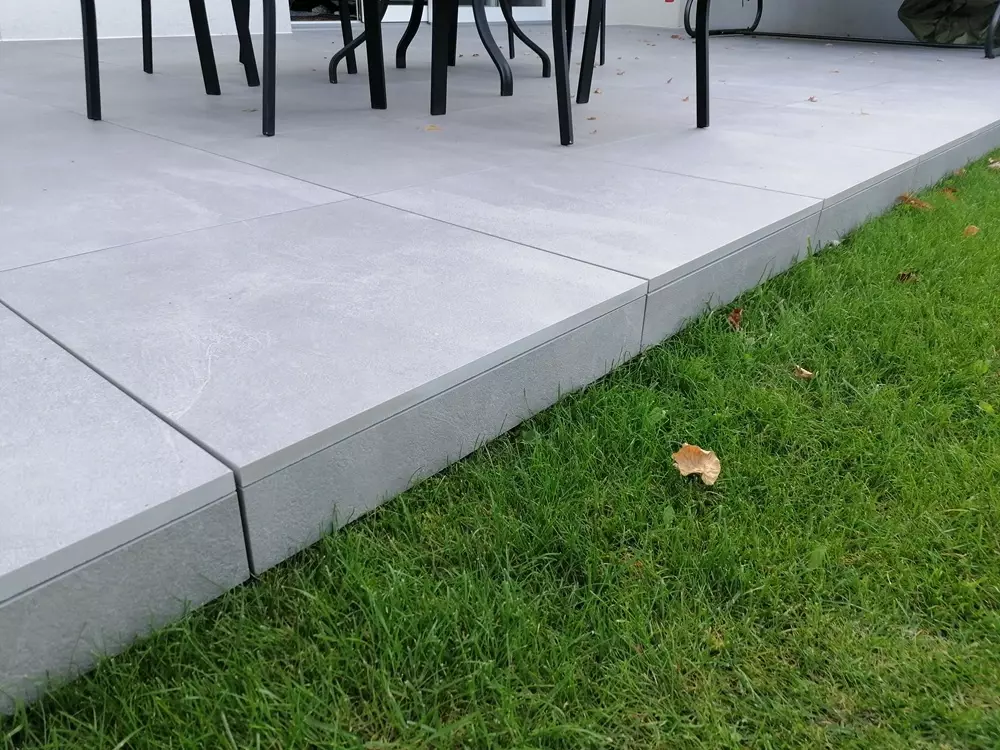 Do realizacji zastosowano płyty tarasowe z gresu, odporne na wilgoć, mróz i intensywne użytkowanie. Dzięki nim taras wentylowany nie tylko wygląda nowocześnie, ale również jest funkcjonalny przez wiele lat.