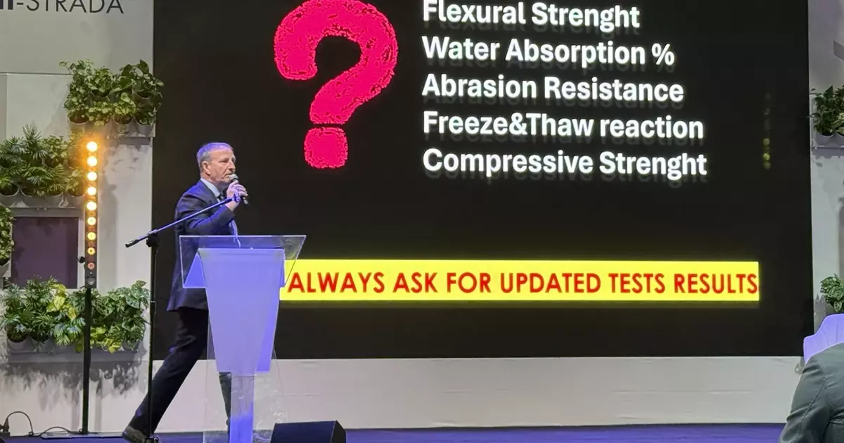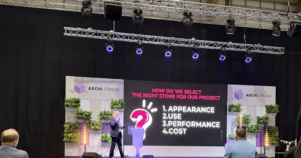 Opowiadał jak dobrze wybierać kamień do projektu w oparciu o appearance, use, performance, cost. Następnie omówił cechy fizyczne materiałów: nasiąkliwość, mrozoodporność, antypoślizgowość oraz o tym, jak minimalizować koszty podczas projektowania kamieni – co jest kwestią kluczową.