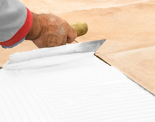 Klejenie trawertynu na tarasie